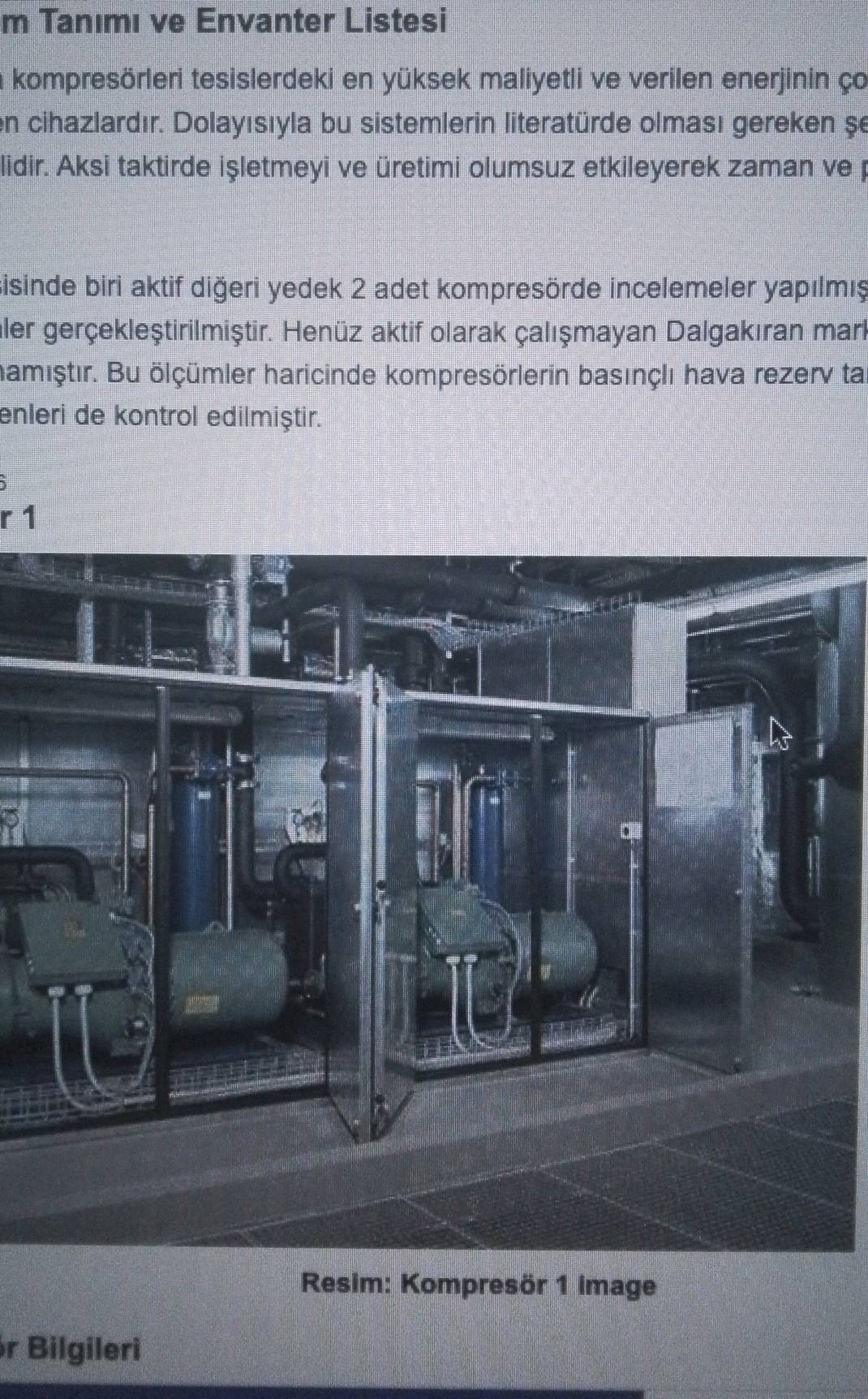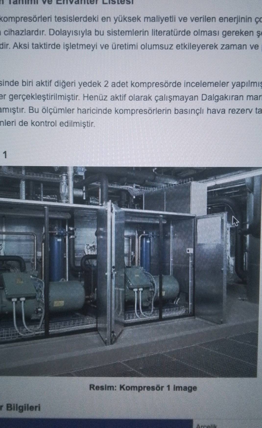 | Kompresör 1 | Arçelik | Green | 15.78 kW | 3.71 bar | 7.11 m³/dk |